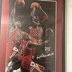 Michael Jordan, Scottie pippen and Dennis Rodman signed Chicago Bulls Poster $2,000Fort Worth, TX