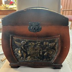 Antique Finish Wooden Box with Cherub Relief, Metal Handles, Velvet Interior$32Arlington, TX