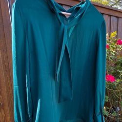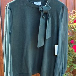 NWT_CeCe Women's Bow Neck Mixed Media Sheer Long Sleeve Sweater Alpine Green.$10Richardson, TX