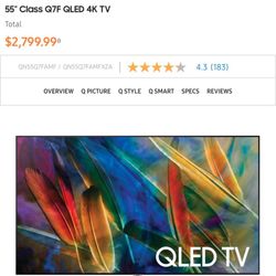 55” Samsung QN55Q7F QLED 4K $180Richardson, TX