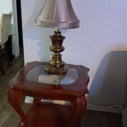 solid cherry wood end tables plus 2 beige lamps .$110Garland, TX