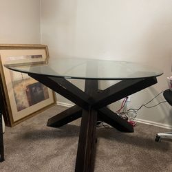 Round Glass Dining Table w/ 4 Upholstered Chairs – 5pc Set$120Wht Settlemt, TX