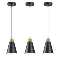 5785: New Black Kitchen Pendant Lighting Over Island 3 Pack,Small Modern Farmhouse Chandeliers with Hammered Metal Cone$50Lancaster, TX