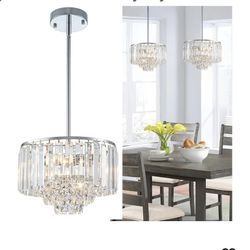 6884: New 11" Pendant Lights Kitchen Island Chrome, 2-Light Modern Crystal Chandeliers for Dining Room Light Fixtures over Table, 4-Tier Round $75Lancaster, TX