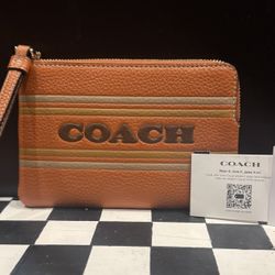 NEW Small Pebbled Leather Corner Zip Wristlet with Coach Stripe in the Canyon Multi colorway$40Grand Prairie, TX