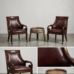 Vintage Leather Club Chairs + Wine Barrel Table Set$250Grand Prairie, TX