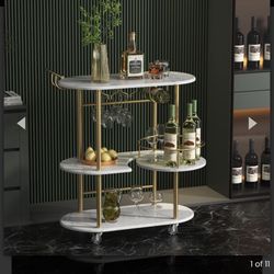 Gold Bar Carts with 4-Tiers Storage Shelves,Mobile Bar Seving Carts On Wheels with Wine Rack and Glass Holder for Kitchen, Dining Room, Living Room-Go$110Fort Worth, TX