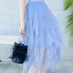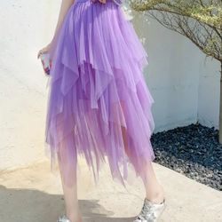 Lilac Purple lace layered women's tutu midi mesh skirt