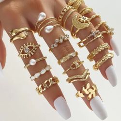 A set of 24 woman gold pearls moon hands rings ring band gift