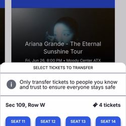 4 tickets for Ariana Grande (26th show)$0Austin, TX