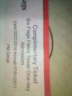 1 ticket for six flags through 01/01/17$40Austin, TX