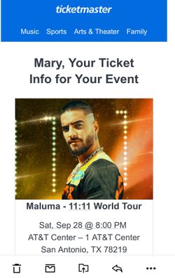 Maluma tickets 9/28/19 att center San Antonio Texas$250West Lake Hills, TX