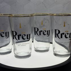 Set of (4) Nice New Cerveza Rrëy gold-rimmed pint glasses, designed for serving artisanal Mexican beer. La Cerveza Astresenel Del Norte Beer Pint Gla$39Austin, TX