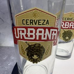 Set of (4) Nice New collectible beer glasses branded with the logo for Cerveza Urbana, a craft brewery. Pint glasses or drinking glasses. Features a h$39Austin, TX