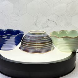 Set Of (3) Assorted Vintage Scalloped Ribbed Studio Pottery Bowls Glazed. $49Austin, TX