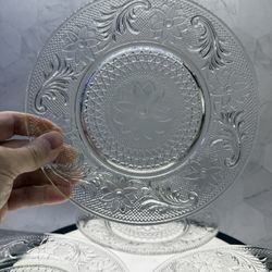 Set of (4) Vintage Indiana Glass "Sandwich" pattern luncheon or salad plates made by the Indiana Glass Company and often distributed by Tiara Glass Co$30Austin, TX