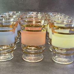 Set of (12) Vintage Frosted and Gold Stripe Juice Glass Set. $39Austin, TX