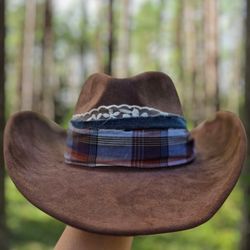 ✨ Handcrafted Vegan Suede Cowboy Hat – Chocolate & Flannel Lace ✨ NEW!!!$60Leander, TX