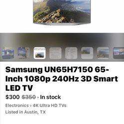 65 inch, samsung smart tv, 3d model, nu6900 6 series$400Austin, TX