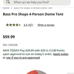 Bass Pro Shop 4 Person Tent $15Kyle, TX