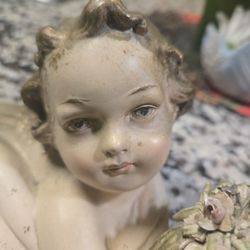 Vintage Cherub Angel Face Holding Flowers Figurine $15Mustang Ridge, TX