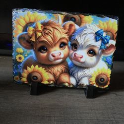 Ceramic Baby Highland Cows Photo Slate $18Cedar Park, TX