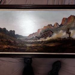Henry Wallace STAGE COACH Large Oil Painting 25x44$200Leander, TX