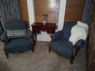 Set of Victorian Blue Occasional Chairs(1 was torn at the top in the washer)$150Austin, TX