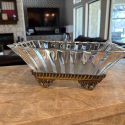 Vintage Crystal Centerpiece Bowl with Ornate Footed Brass Base$30Austin, TX