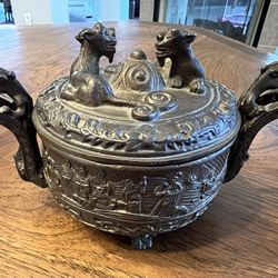 Mid-century Chinese Lidded Bronze Incense Burner Decorated with Mythological Creatures$55Round Rock, TX