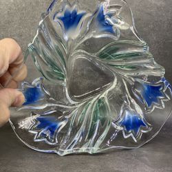 Vintage Mikasa Crystal Bluebells Green Blue 7 3/8" Handkerchief Bowl Decorative Floral. $29Austin, TX
