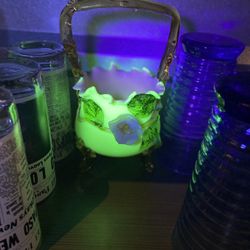 Beautiful Vintage STEVENS & WILLIAMS Victorian Art Glass Hand Blown Glass with Thorn Handle Basket applied FLOWERS Pink Cased Glass, Floral Appliqué,$199Austin, TX