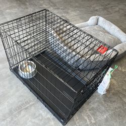 Dog Cat Pet Cage w/Rectangle Lounger Cuddler Pet Bed Food Bowl Gray Black, $20Leander, TX