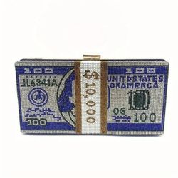 Blue rhinestones money bill box clutch evening crossbody bag gift