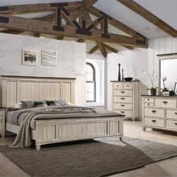 Sawyer Antique White/Brown Panel Bedroom Set(Queen and King Bed Frame$1,099Round Rock, TX