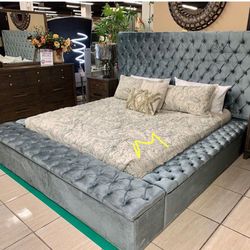 Jolie Velvet Gray Queen Platform Bed /King Bed Frame$1,199Round Rock, TX