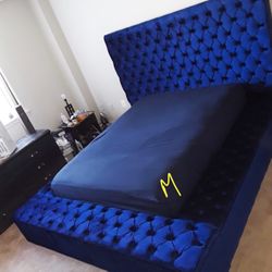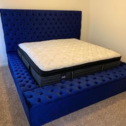 Paris Blue Velvet Queen Storage Platform Bed (King Bed Frame$1,099Round Rock, TX
