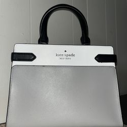 Kate Spade Kate Spade Two-Tone White & Gray Structured Satchel with Black Handles/CrossBody $95Austin, TX