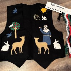 Bunnies, Deer, Birds, Etc. hand crafted Black felt Vest With Extra Threads, Pins& Needle. - Incomplete $30Round Rock, TX