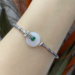 S925 silver green jade bamboo style chunky bracelet$29Austin, TX