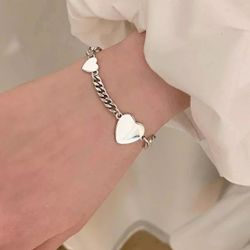 925 sterling silver heart bracelet,S925 silver hearts circles bracelet,chunky bracelet$24Austin, TX