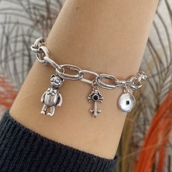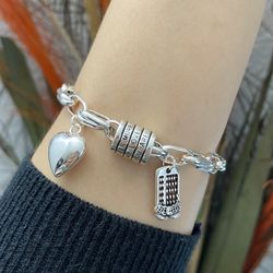925 sterling silver ball and good luck tag chunky charm bracelet for women girls $16Austin, TX