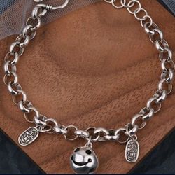 925 Sterling Silver ladies women's happy face charm chain bracelet Gift$18Leander, TX