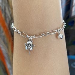 S925 silver ball money cat good luck tag charm bracelet For Women Girls $18Round Rock, TX