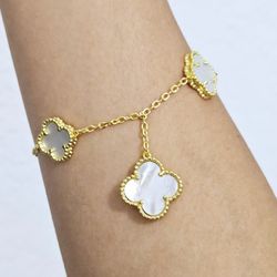 18k gold with White floral enamel charm women's bracelet Gift$45Austin, TX