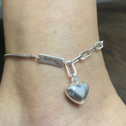 925 sterling Heart and good luck tag chunky Ankle bracelet for women girls $16Pflugerville, TX
