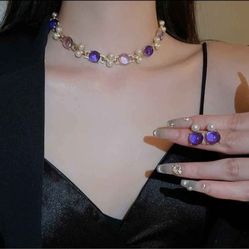 A set of Gold with purple stones women's necklace choker and earrings Gift$26Georgetown, TX