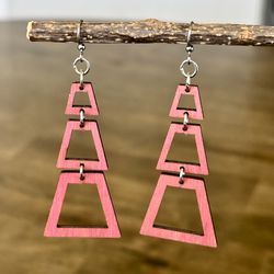 Pink Laser-Cut Wood Dangle Earrings$5Austin, TX