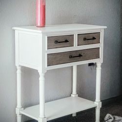 Small Desk Antiqued Wood 3 Drawers Side Table (Cream and Brown)$30Austin, TX