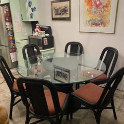Rattan Dining Table, 6 Chairs, Glass Top, MCM, McGuire Style $587Austin, TX